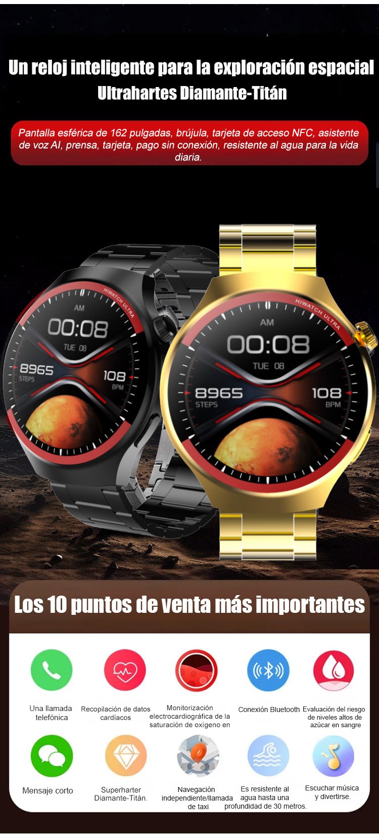 WATCH4PRO Exploración Espacial Reloj Inteligente de Pantalla Redonda